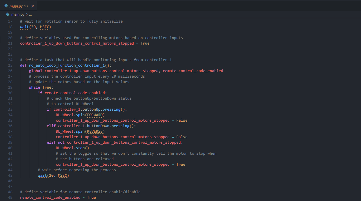 This was for the VEX 'Spin Up!' competition, during 2022-2023. This code is the controller logic for the robot of my team!
